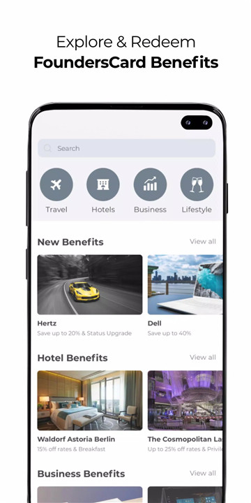 You can access and redeem your business, travel, and lifestyle perks directly through the FoundersCard App. Use your digital membership card for in-person redemptions at partner locations.