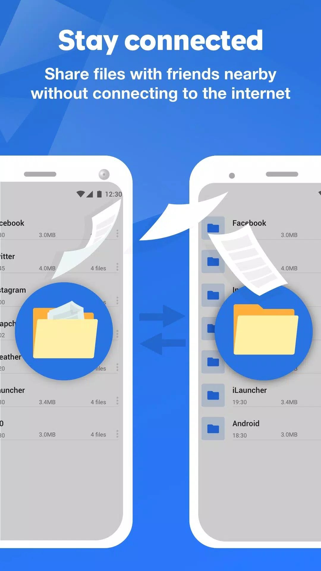 No internet? No problem! FileMaster’s Wi-Fi Share feature lets you transfer files between devices — including smartphones and PCs — over a hotspot connection. Share apps, videos, music, photos, and documents quickly and safely, with no file size limits.