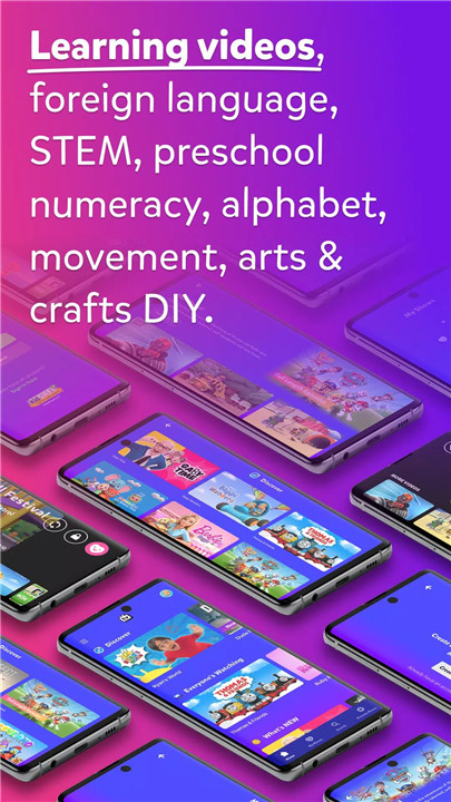 Content includes educational shows, cartoons, full TV series, musical sing-alongs, and kid-friendly gaming videos.