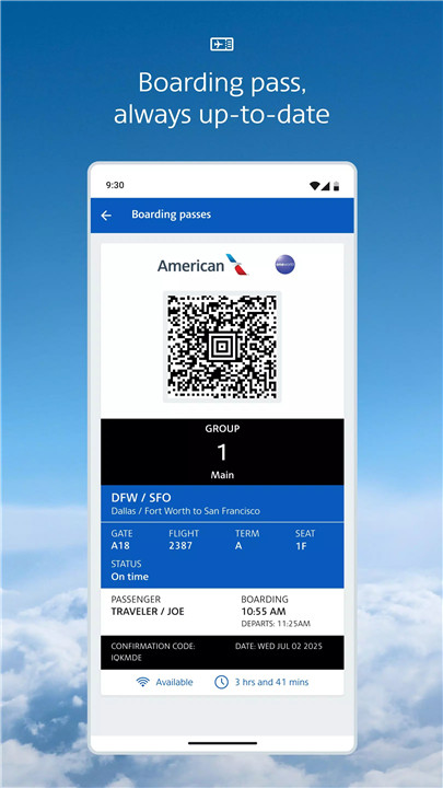 Skip printing and access your boarding pass directly on your phone. Check-in, retrieve, and save your mobile boarding pass with real-time updates to breeze through airport security.