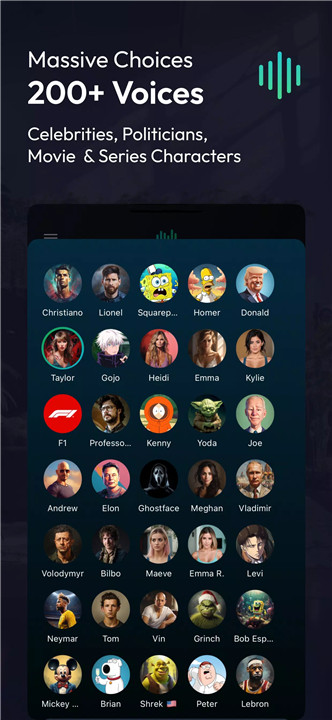 Voices AI boasts an impressive collection of voices, allowing you to choose from a variety of renowned figures. Transform your text into spoken words with the voice of a celebrity, political leader, or any other influential personality.
