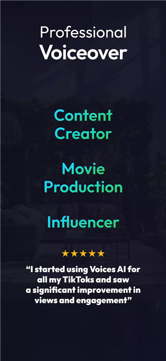Elevate your content with professional voiceovers for videos, commercials, and TV segments. Voices AI provides a cost-effective alternative to traditional voiceover services, helping you achieve high-quality results without breaking the bank.