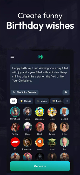 Surprise your friends with personalized voice messages or playful pranks. Whether it's for a special occasion or just for fun, Voices AI lets you create unique and memorable audio experiences.