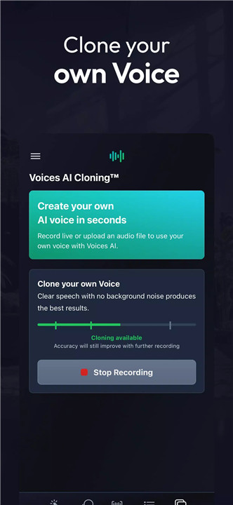 Explore the innovative voice cloning feature of Voices AI! Record a short audio sample, and our technology will clone it to create personalized voiceovers. Whether you want to mimic a friend for a fun prank or use a celebrity's voice for your project, Voices AI gives you the flexibility to choose and create.