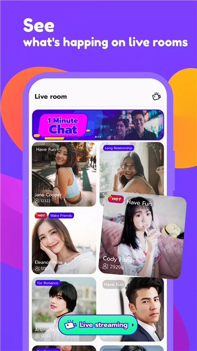 Join Live Streams: Participate in live streaming rooms either as a host or a viewer. Interact with others, raise your hand, and join the conversation.
