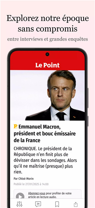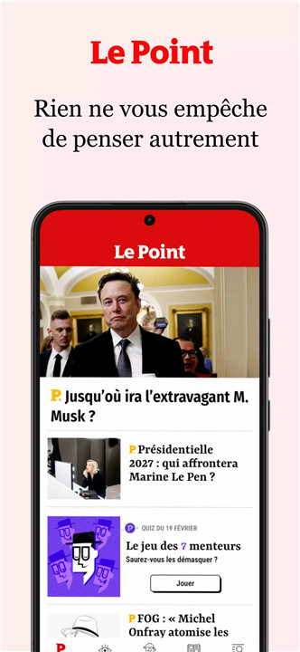 Le Point isn't just another news app—it’s a bold reimagining of how we engage with information. With over 50 years of trusted journalism behind it, Le Point gives you real-time news across politics, society, culture, technology, and more.