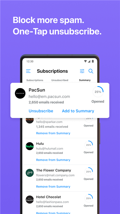 • Banish junk mail permanently with our pioneer one-tap unsubscribe feature.