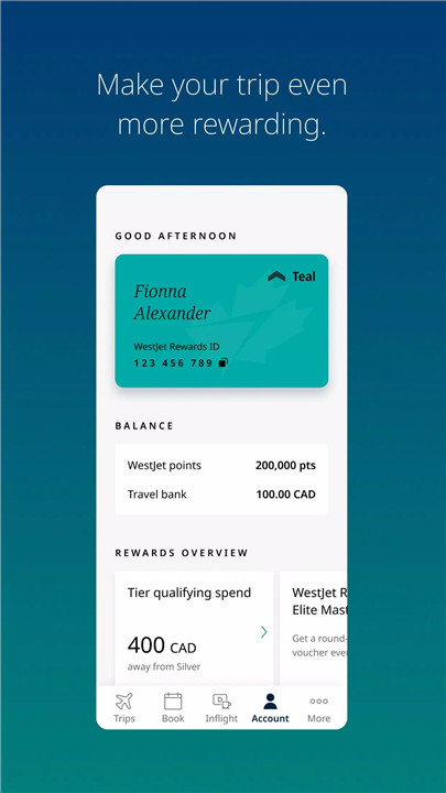 Make your travel even more rewarding with the WestJet app. Track your WestJet Rewards tier status, points, travel bank balance, and available vouchers. Enjoy exclusive benefits and perks while making the most of every journey, whether for business or leisure.