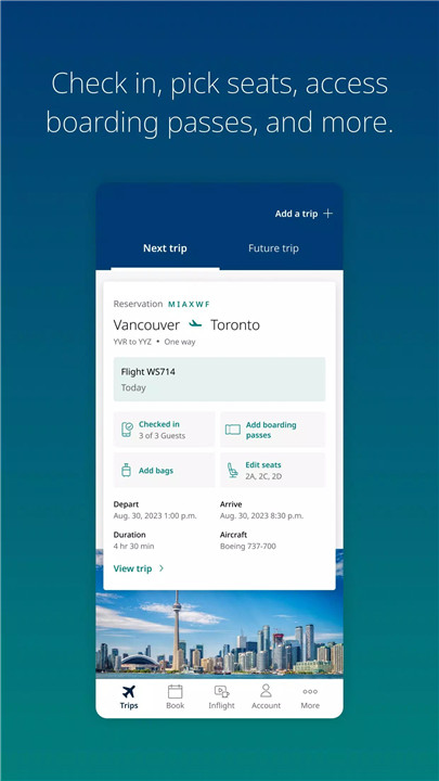 With the WestJet app, managing your travel is effortless. Check in on the go, access electronic boarding passes and itineraries, and receive helpful notifications about your flight. From departure to arrival, the app keeps all your essential travel information in the palm of your hand, making your journey smoother and stress-free.