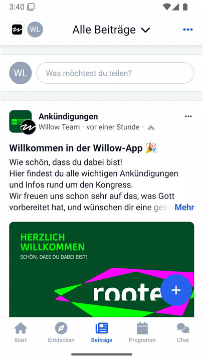 Discover the official app from Willow Creek Germany, designed as a digital companion for leadership conferences and for the time between events. The Willow app provides comprehensive access to everything related to Willow Creek leadership conferences in Germany and enables ongoing inspiration, connection, and engagement before, during, and after each conference. It brings structure, clarity, and interaction into one central platform, supporting a meaningful and well-organized conference experience.