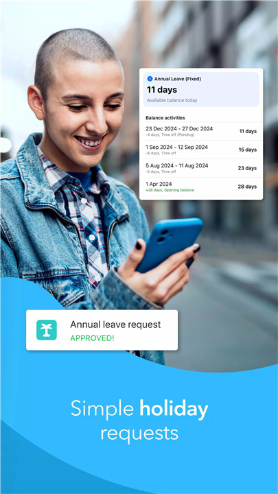 Employees can submit vacation or leave requests directly in the app, and managers can approve them easily.