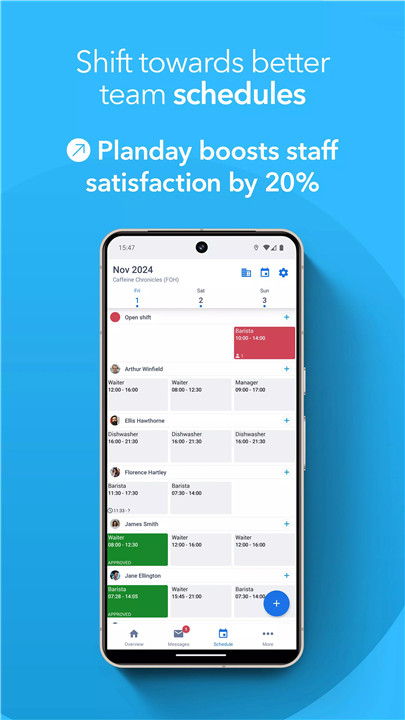 Planday is a comprehensive shift planning app designed for both managers and staff, streamlining team management and daily operations in one place. It simplifies scheduling, time tracking, and team communication, helping businesses stay organized while empowering employees to manage their shifts with ease. Whether creating a schedule from scratch or joining a team already using Planday, the app ensures everyone stays connected and informed.
