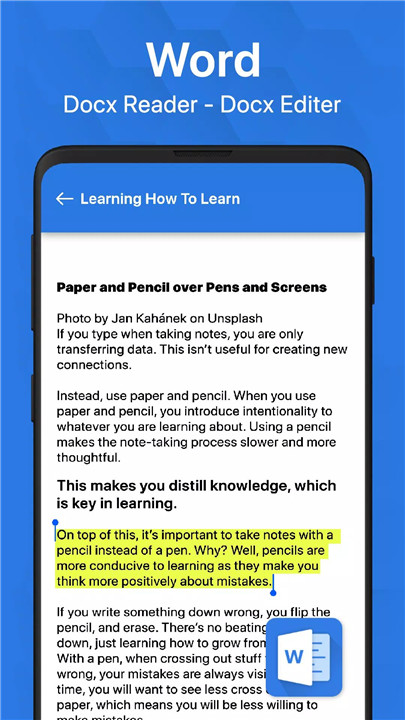 Quickly open, view, and edit your DOCX files with a fast, responsive interface.