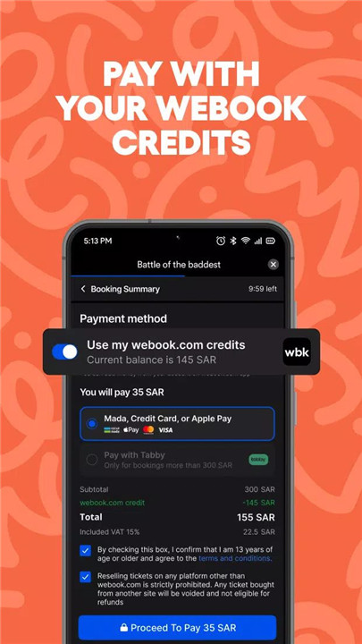 Webook supports secure payments via major credit cards, Mada, and other local payment options. You can also view prices with no hidden fees.