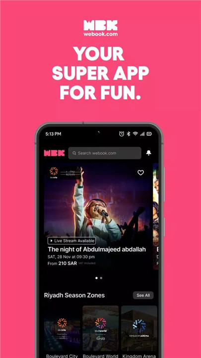 From international acts to local festivals, Webook keeps you updated and connected to Saudi’s vibrant entertainment scene.