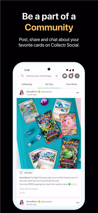 Stay ahead of price swings and trends with live market valuations. Collectr keeps you informed with up-to-the-minute data, ensuring you always know what your collection is truly worth. Whether you’re trading, buying, or selling, Collectr gives you the confidence to make informed decisions.