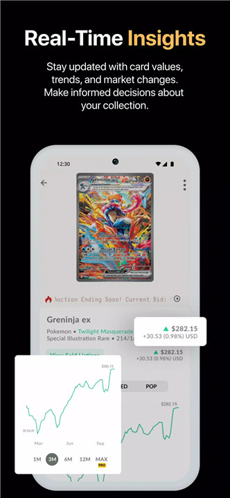 Spot top-performing cards, hidden gems, and buying opportunities with real-time analytics. Track your biggest gains and losses, compare pricing history, and get insights designed to maximize the value of your collection. You’ll never miss a market movement again.