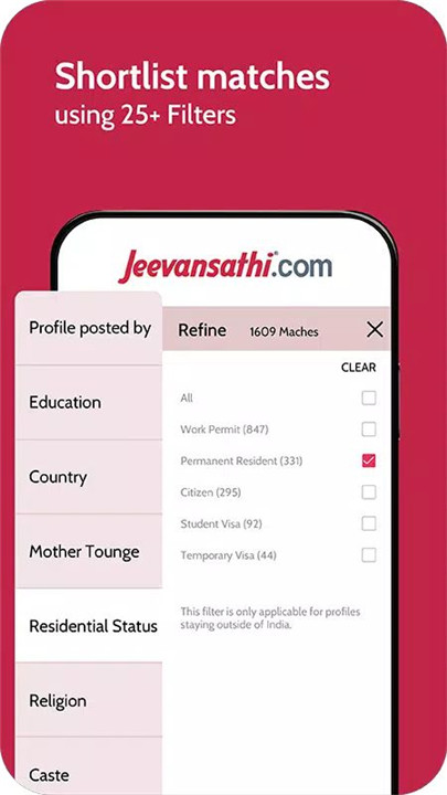 Jeevansathi is one of the largest and most trusted NRI matchmaking apps, connecting Indian communities across the USA, Canada, Australia, Dubai, and other global locations.