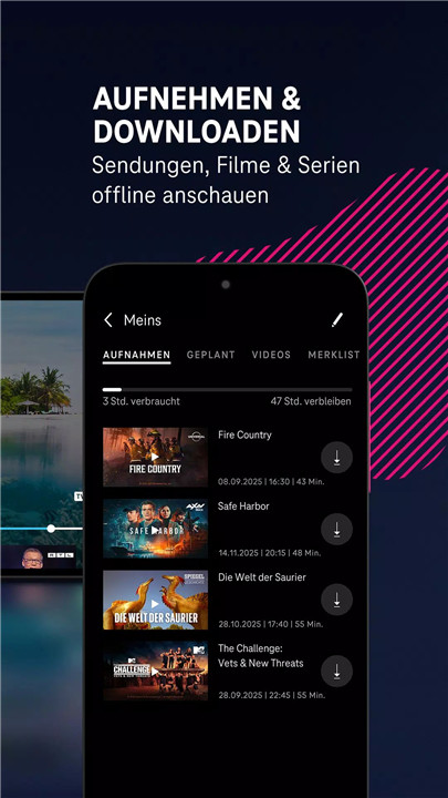 • Herunterladen/Abspielen von Video-on-Demand (VoD) Inhalten