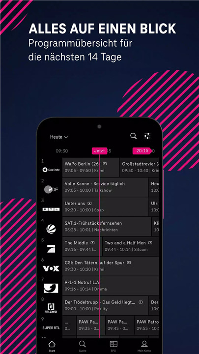 MagentaTV+ features a unique selection of series and movies, including exclusive German premieres, international hits like Yellowstone and Suits, as well as originals such as Herr Raue reist! and The Hunting Wives. Kids and teens can enjoy content from ARD, ZDF, Nick+, and more.