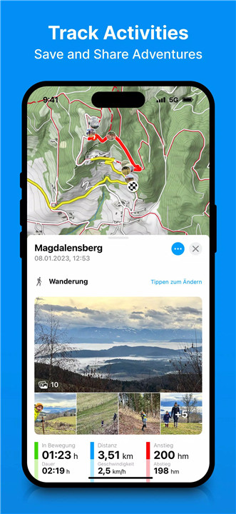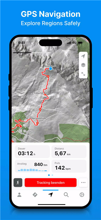 · Detailed 3D maps and official hiking maps (ÖK50, SwissMap, etc.)