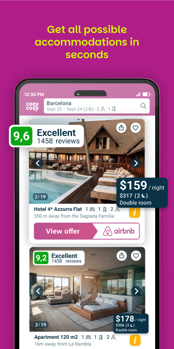 • From spontaneous weekend getaways to meticulously planned family holidays, Cozycozy ensures your perfect stay is always within reach at the best possible price.