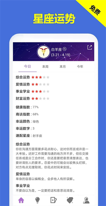 获取最新的星座运势预测,了解即将发生的美好事件或潜在的挑战,为你的每一天、每一周、每一月甚至全年的生活做好准备。