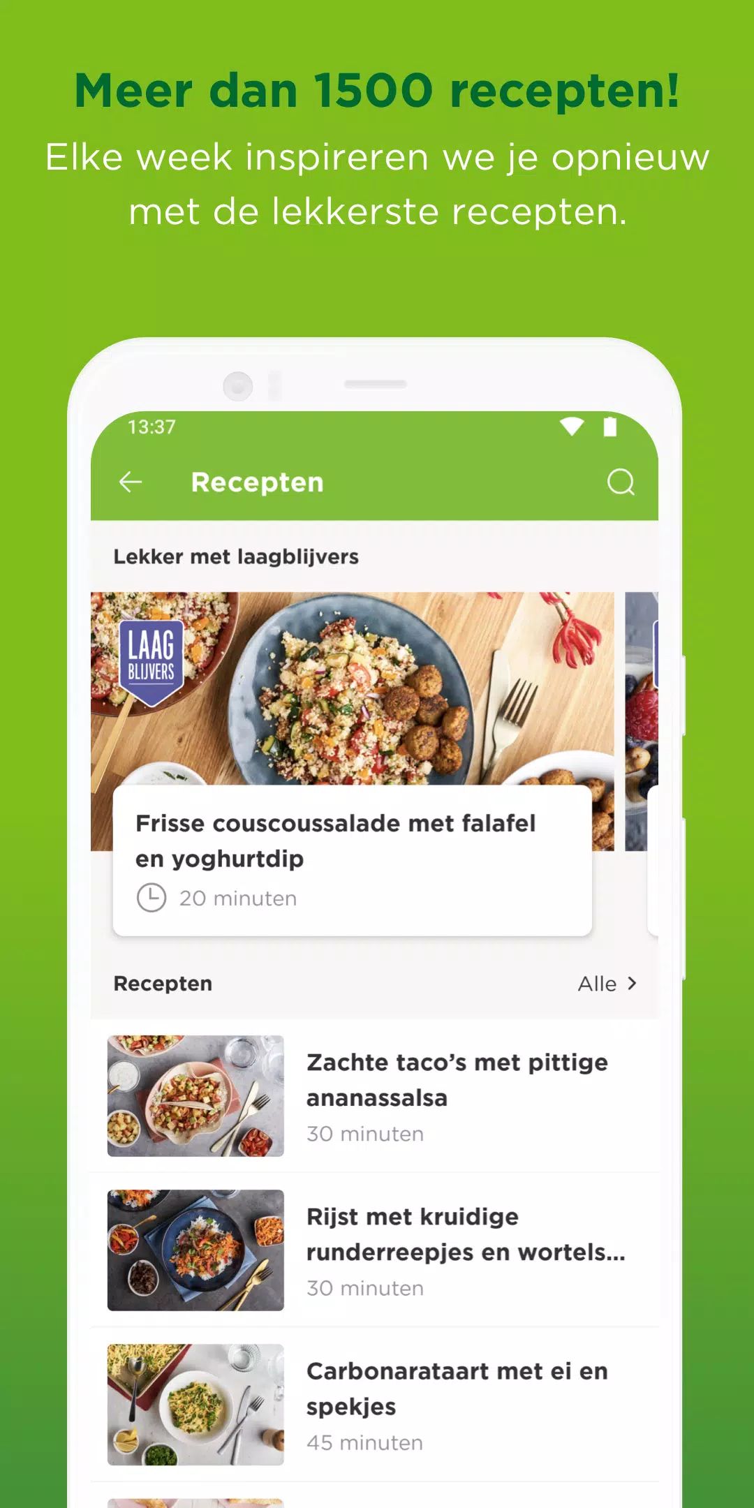 Every week, the app features five new Laagblijvers recipes based on PLUS offers—helping you cook tasty, affordable meals.