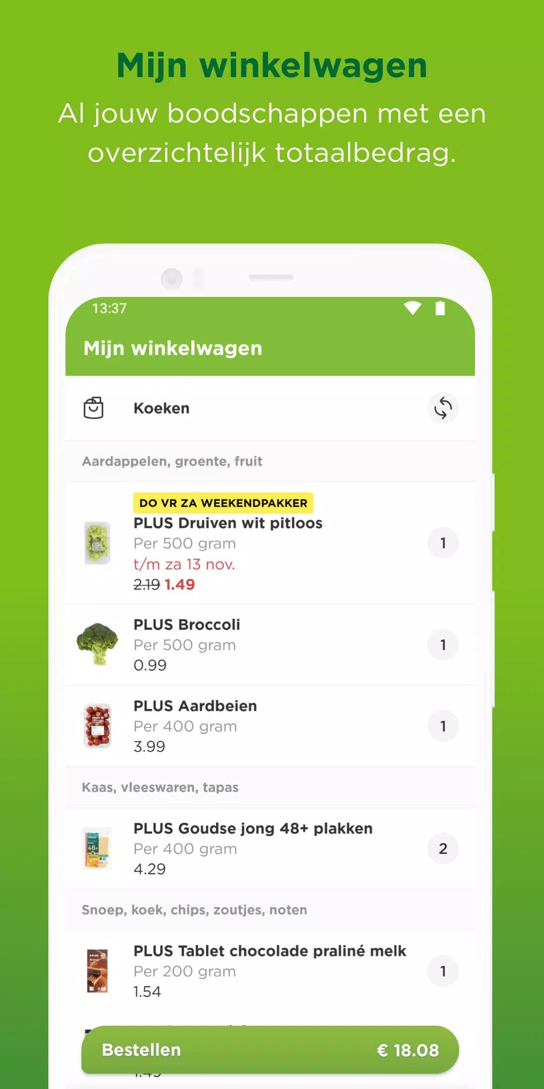 With a Mijn PLUS account, you can log in seamlessly and enjoy full synchronization across all your devices. Your shopping list in the app automatically matches your list on plus.nl, meaning you can start a list at work, update it on the go, and finalize it at home.