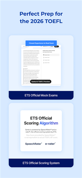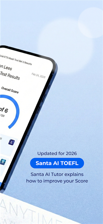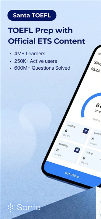 Achieve your TOEFL target score with Santa AI TOEFL! Trusted by 4M+ students, official ETS partner for AI-powered, authentic prep. Download the latest version of Santa - AI TOEFL to enjoy new features and updates immediately!