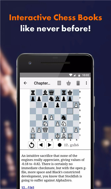 Looking for a revolutionary way to study chess? Forward Chess is an innovative chess book reader that lets you not only read chess books but also actively interact with them. It combines the power of a chessboard, a book, and one of the strongest chess engines on the planet—Stockfish—all in the palm of your hand. Play through the book’s lines, explore your own variations, and receive real-time analysis from Stockfish to gain a deeper understanding of the game.