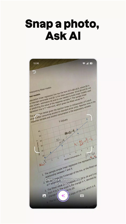· AI Camera Solver – Take a photo of a homework problem and receive clear, guided solutions.