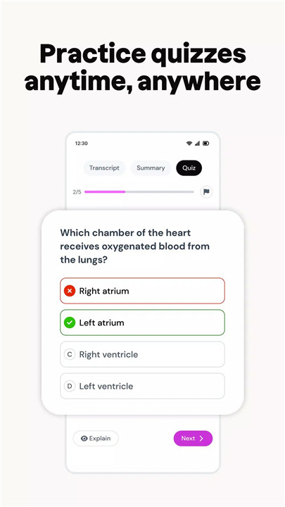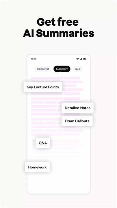 · AI Quiz Maker – Turn transcripts and summaries into personalized quizzes to test your understanding.