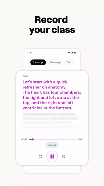 With AI-powered summaries, you can quickly see the main ideas and key insights from any class. It’s perfect for students who want to review efficiently or catch up after missed lectures.