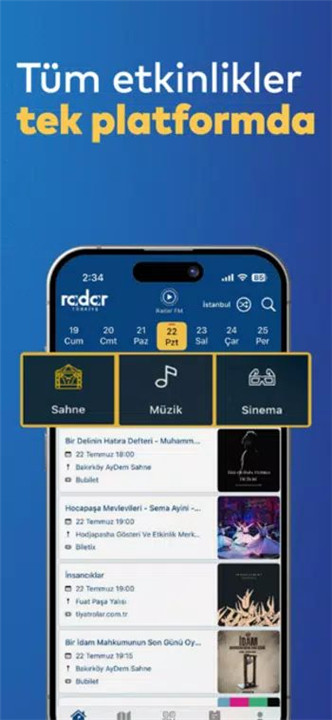 The whole city is waiting to be explored with Radar Türkiye. Start exploring with Radar Türkiye and make every heartbeat echo with excitement in every corner of Türkiye. From vibrant city streets to hidden cultural treasures, Radar Türkiye opens the doors to events, cultural feasts, art, entertainment, and adventure not only in Istanbul but across the entire country.