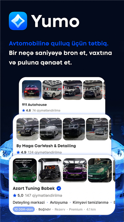 Yumo AZ: Your all-in-one car care app. Find, compare, and book car washes, oil changes & detailing services. Earn bonuses and track orders. Download the latest version of Yumo AZ to enjoy new features and updates immediately!