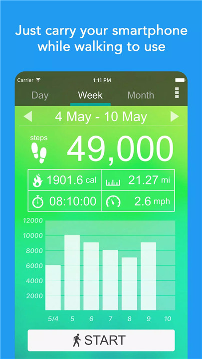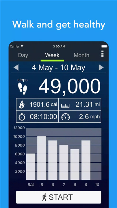 Open the app and tap “Start” to begin tracking immediately. The intuitive, easy-to-use interface makes step tracking accessible for users of all experience levels.