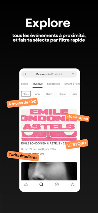 Discover city events and culture with Fase. Get exclusive ticket deals, student discounts, and personalized local itineraries effortlessly. Download the latest version of Fase: Événements & Culture to enjoy new features and updates immediately!