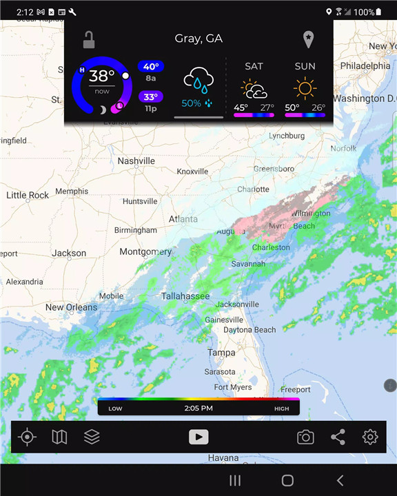 The core of MyRadar’s functionality is its live radar, which instantly displays animated weather radar centered on your current location. With radar loop lengths of up to two hours, users can quickly get a snapshot of the weather conditions around them.