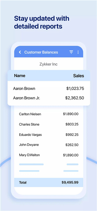 4. Valuable Business Insights Make smarter business decisions with access to over 30 different business reports and a detailed dashboard. Zoho Invoice’s comprehensive reporting tools offer insights into your financial health, helping you understand where your money is going and how your business is performing.