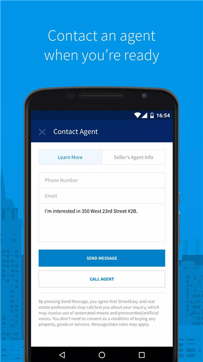 Each listing includes an option to email or call the agent directly from within the app for fast, seamless communication.