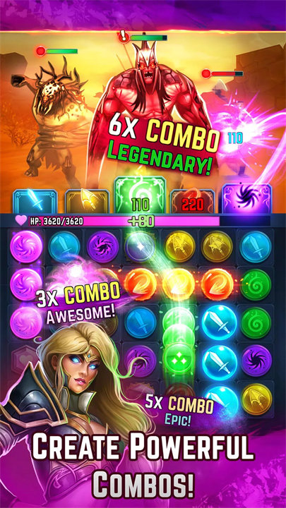 The core gameplay revolves around matching colored orbs on a grid to unleash devastating attacks on enemies. Each match increases your hero's power and contributes to combos that can deal heavy damage.