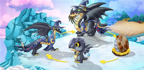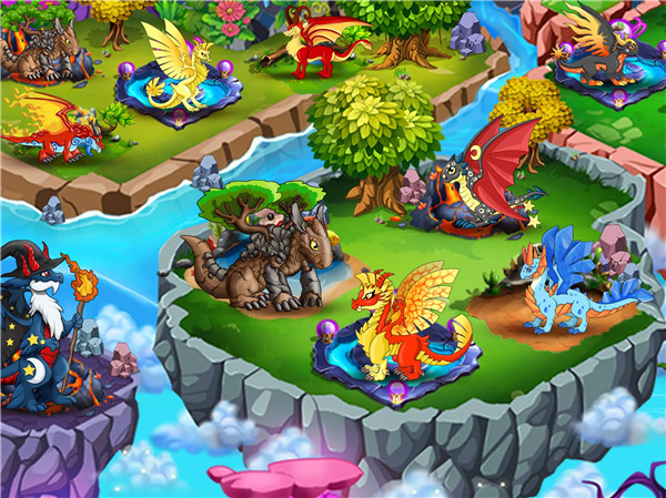 Each dragon has its own appearance, evolution path, and elemental powers, allowing you to create customized battle teams and habitats.