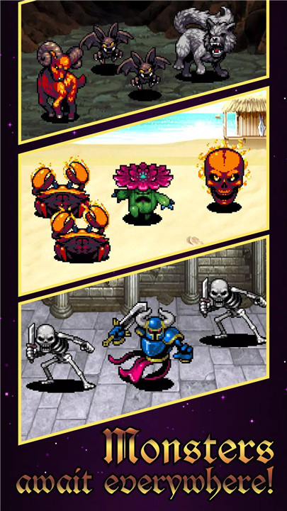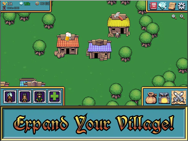 The land is dotted with dangerous dungeons, each brimming with hundreds of monsters. Players use the Wizard’s Wheel to tap and hunt loot, clearing enemies and claiming treasures. Challenging bosses require careful planning and upgraded heroes to overcome. Pixel-style dungeons deliver a nostalgic RPG aesthetic while keeping the action fresh and exciting.