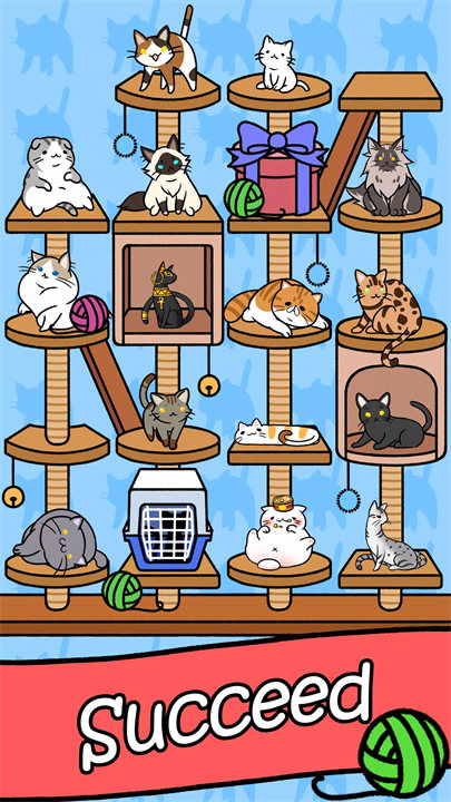 In "Cat Condo," players begin with a basic cat and merge identical cats together to create new breeds. Each merged cat evolves into a higher-tier cat with unique appearances and sometimes special abilities.