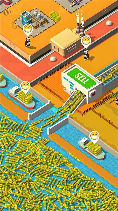 Production begins with basic equipment and gradually expands through unlocking advanced machinery. Machines peel, chop, crush, and refine sugarcane into high-quality output. Each upgrade improves speed, efficiency, and output, allowing the factory to handle larger volumes and more complex processes.