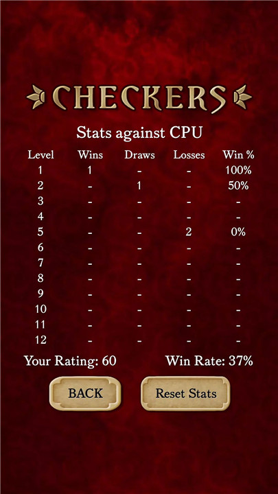 For those who enjoy a competitive experience, Checkers supports 2-player hot-seat mode. This feature lets two players take turns on the same device, making it perfect for friendly matches with family or friends. The game also keeps track of your stats against each level, giving you insights into your performance and improvement over time.