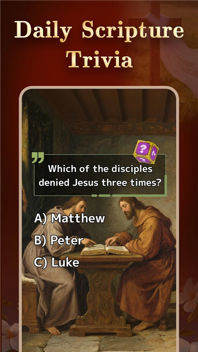 • Engage with challenging Bible quizzes and delightful word puzzles.