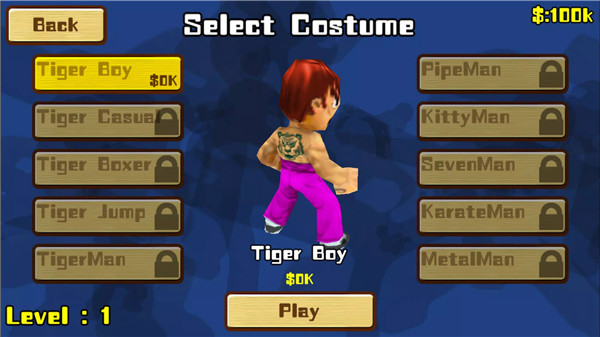 Over 10 usable costumes are available, each granting unique power-ups that enhance Tigerman’s abilities. Players can strategically equip costumes to match their play style or tackle specific challenges effectively.