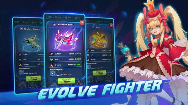 Choose a base model fighter and upgrade it with over 100 unique aircraft components of varying rarity. Players can modify weapons, engines, armor, and more to create a fighter tailored to their playstyle. These upgrades are fully visible in-game, and with enough enhancements, the fighter evolves into a formidable galaxy battleship capable of taking on the toughest enemies.